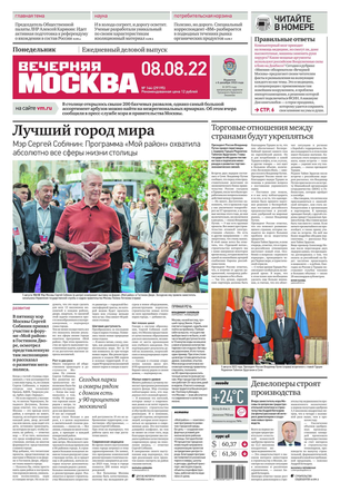 «Вечерняя Москва» — ежедневная российская вечерняя газета, старейшее из вечерних изданий в России, учрежденное в 1923 году. Выходит пять дней в неделю, кроме субботы и воскресенья. Отличается тем, что рассказывает о событиях еще не завершившегося дня. Оперативно освещает хронику и особенности жизни Москвы, охватывает все слои общества и большинство профессиональных и возрастных групп читателей.Издание представлено тремя выпусками – утренним ежедневным, вечерним (выходит три раза в неделю), еженедельным (выходит по четвергам).