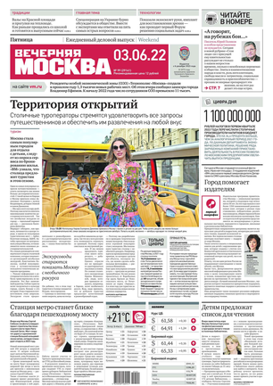 «Вечерняя Москва» — ежедневная российская вечерняя газета, старейшее из вечерних изданий в России, учрежденное в 1923 году. Выходит пять дней в неделю, кроме субботы и воскресенья. Отличается тем, что рассказывает о событиях еще не завершившегося дня. Оперативно освещает хронику и особенности жизни Москвы, охватывает все слои общества и большинство профессиональных и возрастных групп читателей.Издание представлено тремя выпусками – утренним ежедневным, вечерним (выходит три раза в неделю), еженедельным (выходит по четвергам).