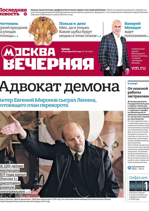 «Вечерняя Москва» — ежедневная российская вечерняя газета, старейшее из вечерних изданий в России, учрежденное в 1923 году. Выходит пять дней в неделю, кроме субботы и воскресенья. Отличается тем, что рассказывает о событиях еще не завершившегося дня. Оперативно освещает хронику и особенности жизни Москвы, охватывает все слои общества и большинство профессиональных и возрастных групп читателей.Издание представлено тремя выпусками – утренним ежедневным, вечерним (выходит три раза в неделю), еженедельным (выходит по четвергам).